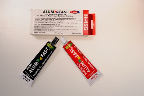 Rapid cure aluminum putty repair kit. A two component epoxy formula highly concentrated with carefully selected pure aluminum particles, modified curing agents and high quality additives to provide maximum strength, durability and ease of application. Alumfast is specially formulated for HVAC copper pipes, HVAC condenser coils, tanks, valves, pumps, castings, water jackets, radiators, etc., where a fast and strong, non rusting aluminum repair is desired and where there is not constant exposure to water. After it cures, Alumfast can be machined, sanded, drilled and tapped which makes it a popular choice for automotive, plumbing and HVAC repairs.