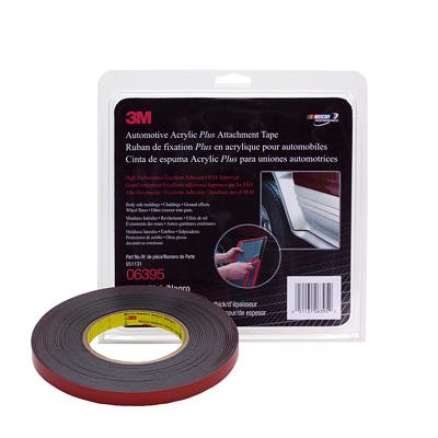 ? 3MTM Automotive Acrylic Plus Attachment Tape 06395 is a .060-inch thick, medium-density, black acrylic foam tape with high performance acrylic adhesives on both sides and a red release liner.
