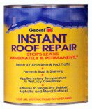 mfr: GEOCEL LIMITED INC INSTANT ROOF REPAIR Stops leaks immediately & permanently Brushable, elastic sealant With rubber-like flexibility Adheres to EPDM, TPO, BUR, SPR & metal roofing Resists severe UV, heat and acid rain Withstands foot traffic, paintable Works in wet & icy conditions Applies at any temperature - mildew resistant 25303 1G BL INST ROOF REPAIR SIZE:1 Gal. COLOR:Black